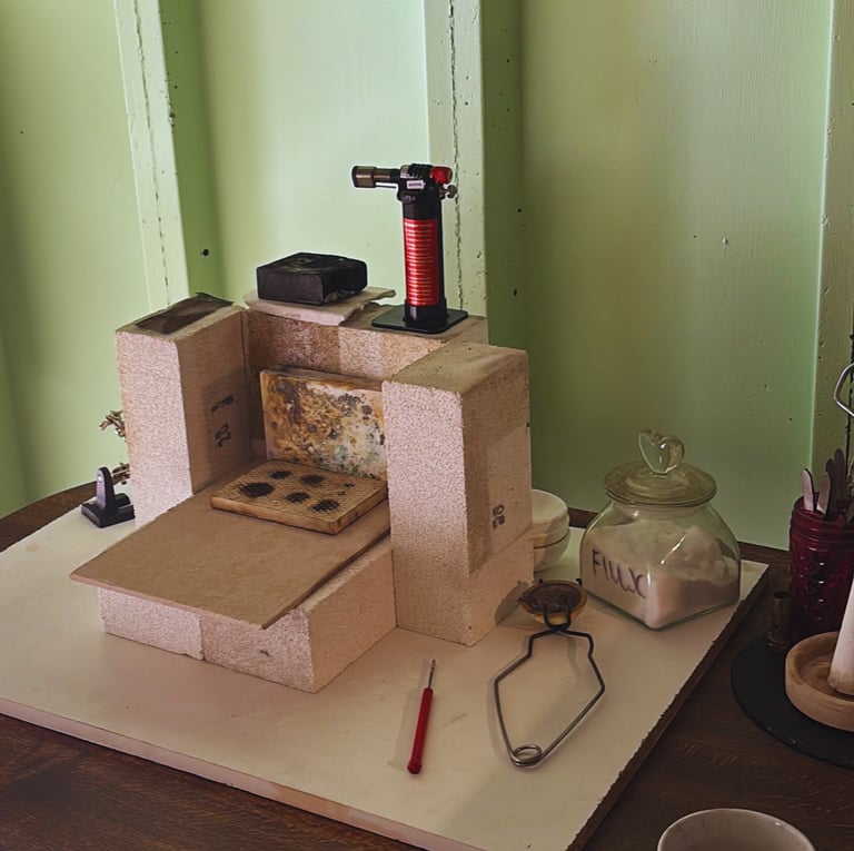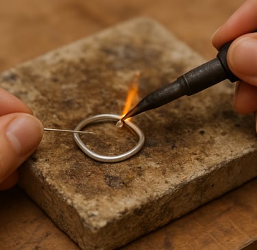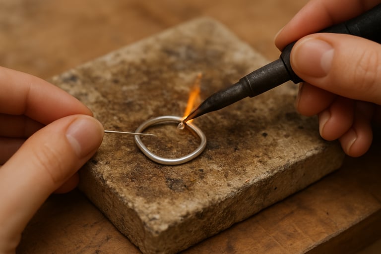 Our soldering block bricks are designed to reflect and retain heat, creating an efficient workspace that supports consistent, high-quality results. For different stages of work, we use both a Sivert torch and a small butane jewellery torch, allowing us to tackle everything from delicate joins to larger, more intricate assemblies.