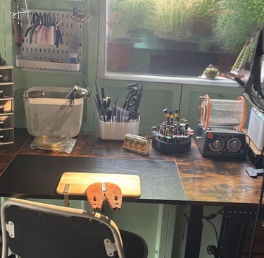 We’ve recently upgraded to a larger soldering station, giving us more space for melting, soldering, and assembling our pieces. The improved ventilation setup allows for the use of larger flames, offering greater flexibility and precision during the making process.