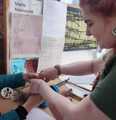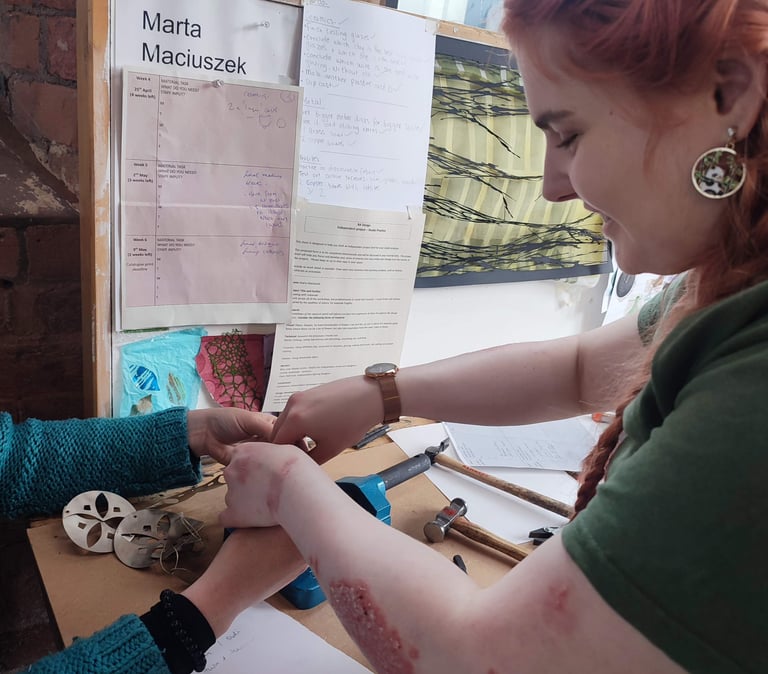 Tess’s creative journey began with fabric and print, guiding her from school through university. Textiles felt familiar & full of life something she could shape and play with easily. Metal, on the other hand, was a completely different story. It felt rigid and impossible to control, a material she had never imagined she’d work with. In those early days, she much preferred the softness of fabric and the freedom of printmaking.